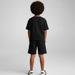 The classic black colour adds timeless versatility, making it perfect for school wear, casual outfits, sports activities, or coordinated sets.